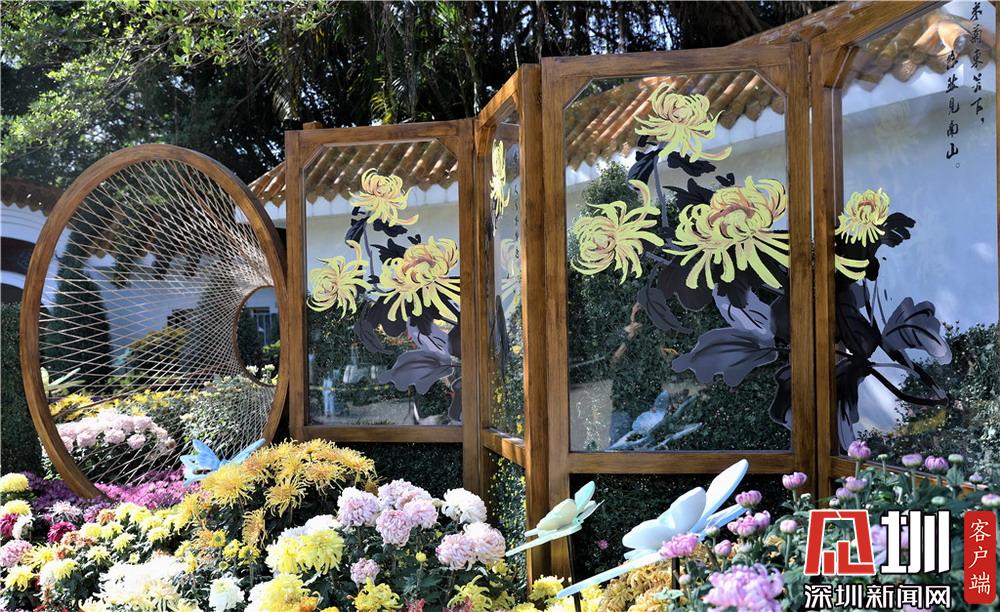 相較往年,今年的品種菊和盆景菊還增添了背景裝飾,結(jié)合展示菊花詩(shī)詞、山水圖案的竹簾畫和布畫裝飾,突顯菊花的文化魅力,豐富菊花展的文化內(nèi)涵。
