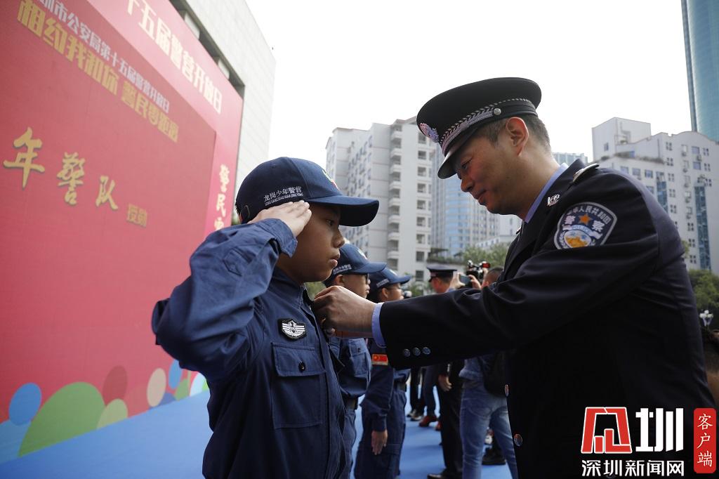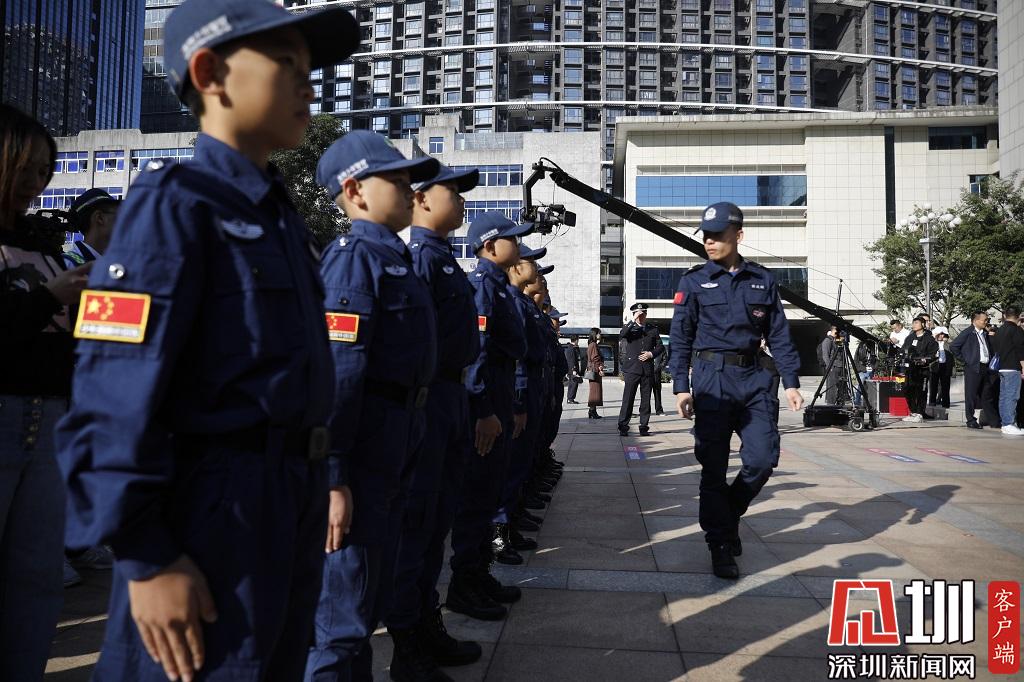 深圳市公安局領(lǐng)導(dǎo)為少年警隊(duì)授勛。