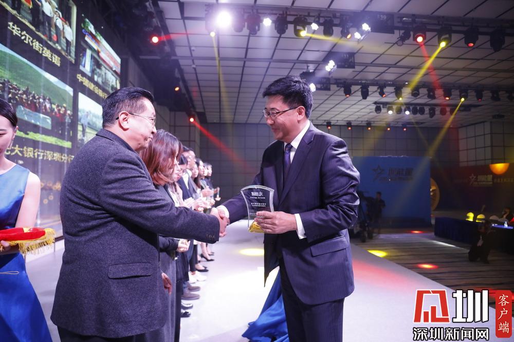 深圳報業(yè)集團(tuán)社長助理、深新傳媒董事長吉書龍為榮獲“年度公益先鋒力量”的單位代表頒獎。