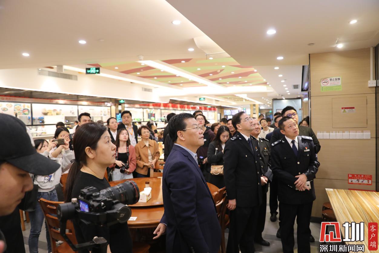 隨后,與會領(lǐng)導(dǎo)共同為羅湖水貝熟食中心揭牌,并一同參觀了熟食中心。在參觀、體驗熟食中心過程中,黃敏副市長對羅湖區(qū)委區(qū)政府高位推動、深入貫徹落實食品安全戰(zhàn)略工作表示肯定,希望羅湖區(qū)進一步擴大熟食中心宣傳,采取增加二維碼張貼率、完善路線指引等方式,讓民生工程惠及更多市民;并不斷加強食品安全管理水平,可引入“圳品”提升餐飲服務(wù)質(zhì)量,切實提高消費者在熟食中心用餐的獲得感和幸福感。