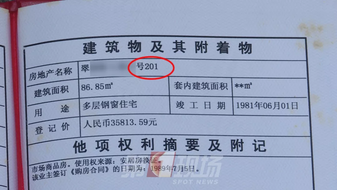 王先生向記者出示他的房產(chǎn)證,他的房號(hào)是201,房產(chǎn)證編號(hào)尾數(shù)是4970。