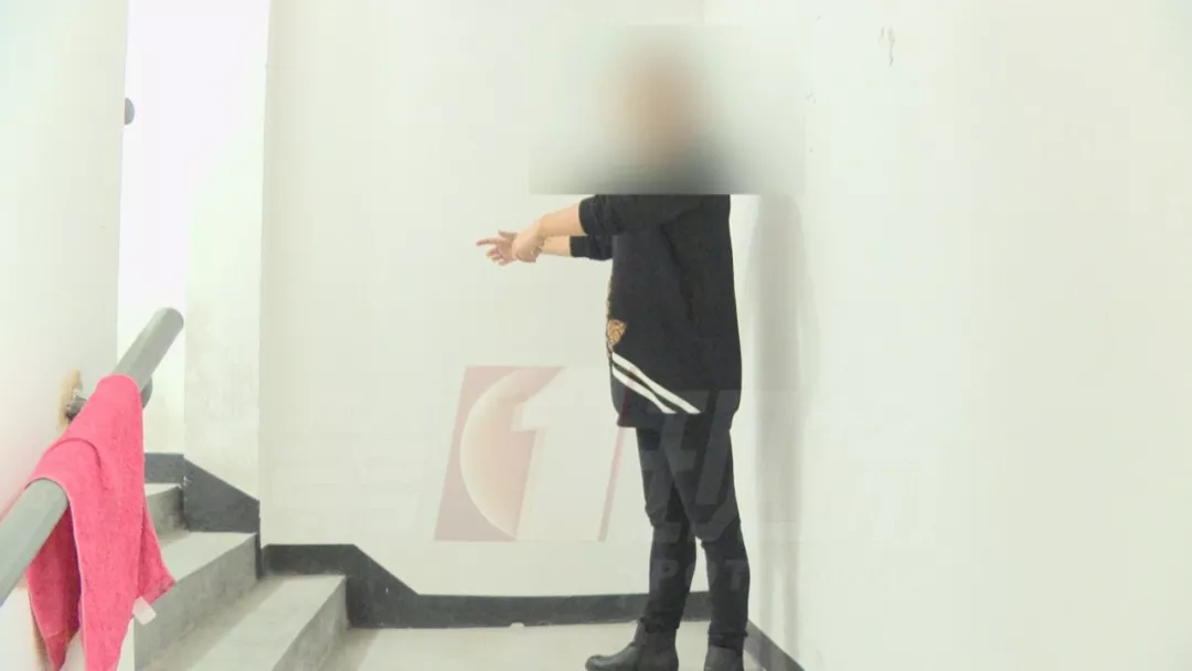 ▲方女士在事發(fā)樓道內(nèi)講述經(jīng)過(guò)