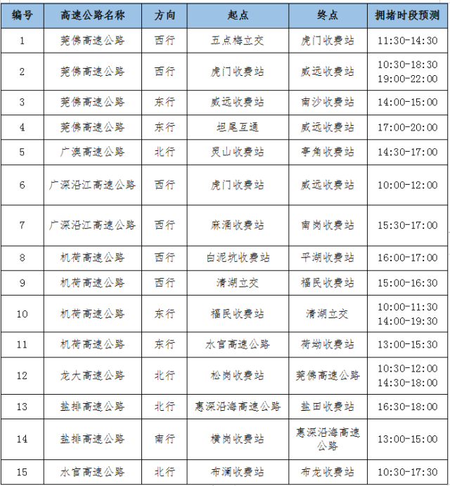 具體來看主要高速公路離深擁堵時段預(yù)測,如果可以,避開這些時間: