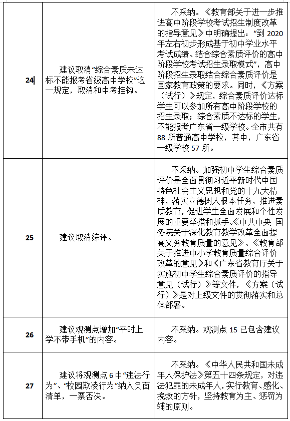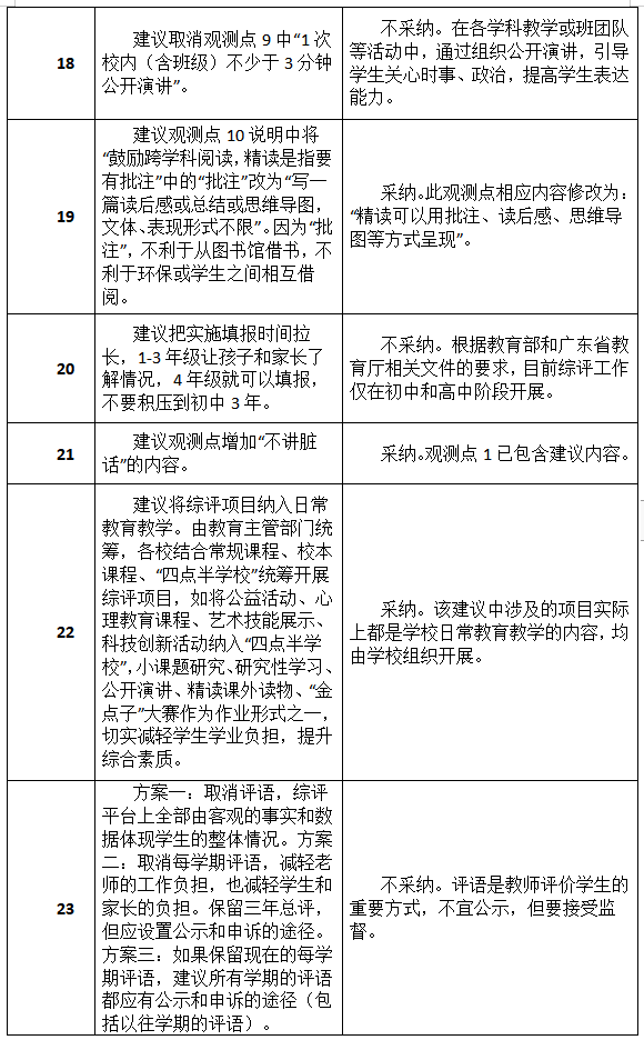 原標(biāo)題:最新進展!深圳初中綜評新方案征集到34類建議,其中19類被采納或部分采納