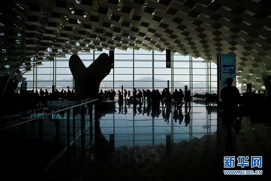 1月15日,旅客在深圳機場排隊登機。新華社記者毛思倩攝