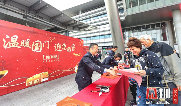 見圳客戶端·深圳新聞網(wǎng)2020年1月22日訊(見圳客戶端、深圳新聞網(wǎng) 記者 張玲 通訊員 劉姝夢(mèng))巍巍國門彰顯大國風(fēng)范,涓涓暖流展現(xiàn)為民情懷。不辭風(fēng)雪的歸鄉(xiāng)路上,國門——就是您的第一道家門。根據(jù)國家移民管理局統(tǒng)一部署,2020年1月17日至2月1日,深圳邊檢總站積極開展“溫暖國門迎您回家”主題活動(dòng),在各口岸出入境現(xiàn)場設(shè)置“國門驛站”,擺放“國門同框”合影墻、“家國情懷”留言板,點(diǎn)綴體現(xiàn)中國年的傳統(tǒng)文化元素表達(dá)祝愿,著力提升廣大出入境人員特別是歸國返鄉(xiāng)人員的獲得感、幸福感和歸屬感,各口岸沉浸在濃濃的年味里。
