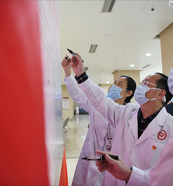 他們科室還有一名醫(yī)生曹憲振,是剛?cè)朦h兩個月的黨員,在得知需要人員到區(qū)疾控中心支援冠狀病毒核酸檢測工作后,第一個寫好《請戰(zhàn)書》,并如愿被派往區(qū)疾控實驗室支援。他說:“現(xiàn)在疫情嚴(yán)峻,作為一名黨員,我應(yīng)該義無反顧支援疫情防控工作,為國家和社會做貢獻!”在這次戰(zhàn)役中,中心實驗室有11名黨員報名參加新冠病毒檢測,他們用實際行動踐行了共產(chǎn)黨員的誓言,做了一名與病毒最接近的人。