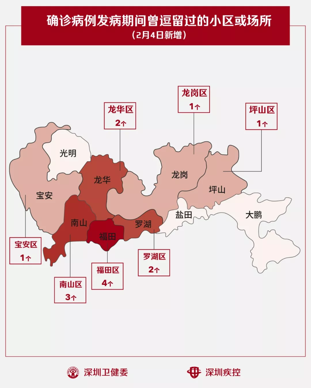 2月4日,疾控專業(yè)人員通過最新的流行病學調(diào)查確認,深圳新增14個小區(qū)(場所),有新確診的病人在出現(xiàn)病征期間曾經(jīng)逗留。