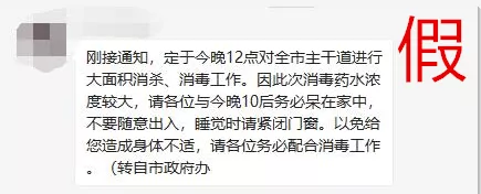 傳言稱,深圳定于今晚12點對全市主干道進(jìn)行大面積消殺、消毒工作。因消毒藥水濃度較大,請市民于今晚10點后務(wù)必待在家中,不要隨意出入,睡覺時請緊閉門窗。