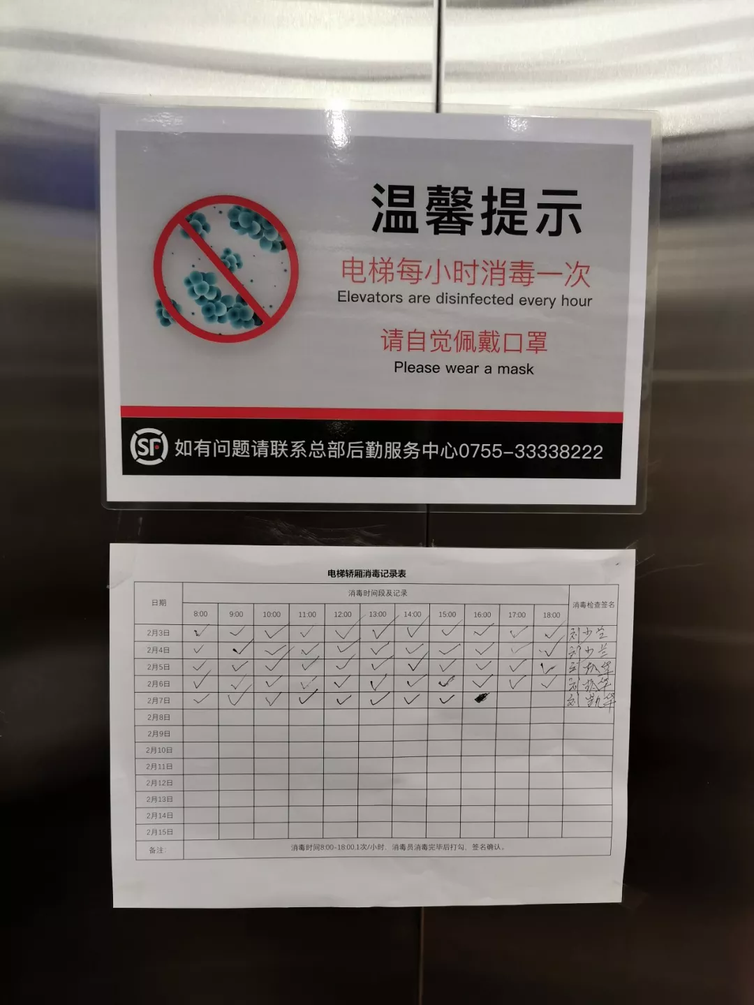 寫(xiě)字樓電梯處放有抽紙。新華社記者孫飛2月7日攝