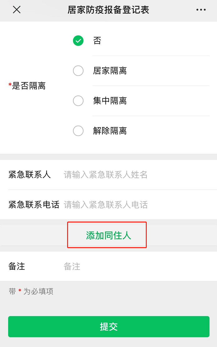 答:隔離情況按所在小區(qū)或自家實際隔離情況填寫。