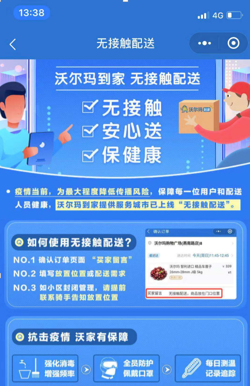 1、下單時備注選擇“無接觸配送服務(wù)”,盡量避免面對面接觸。