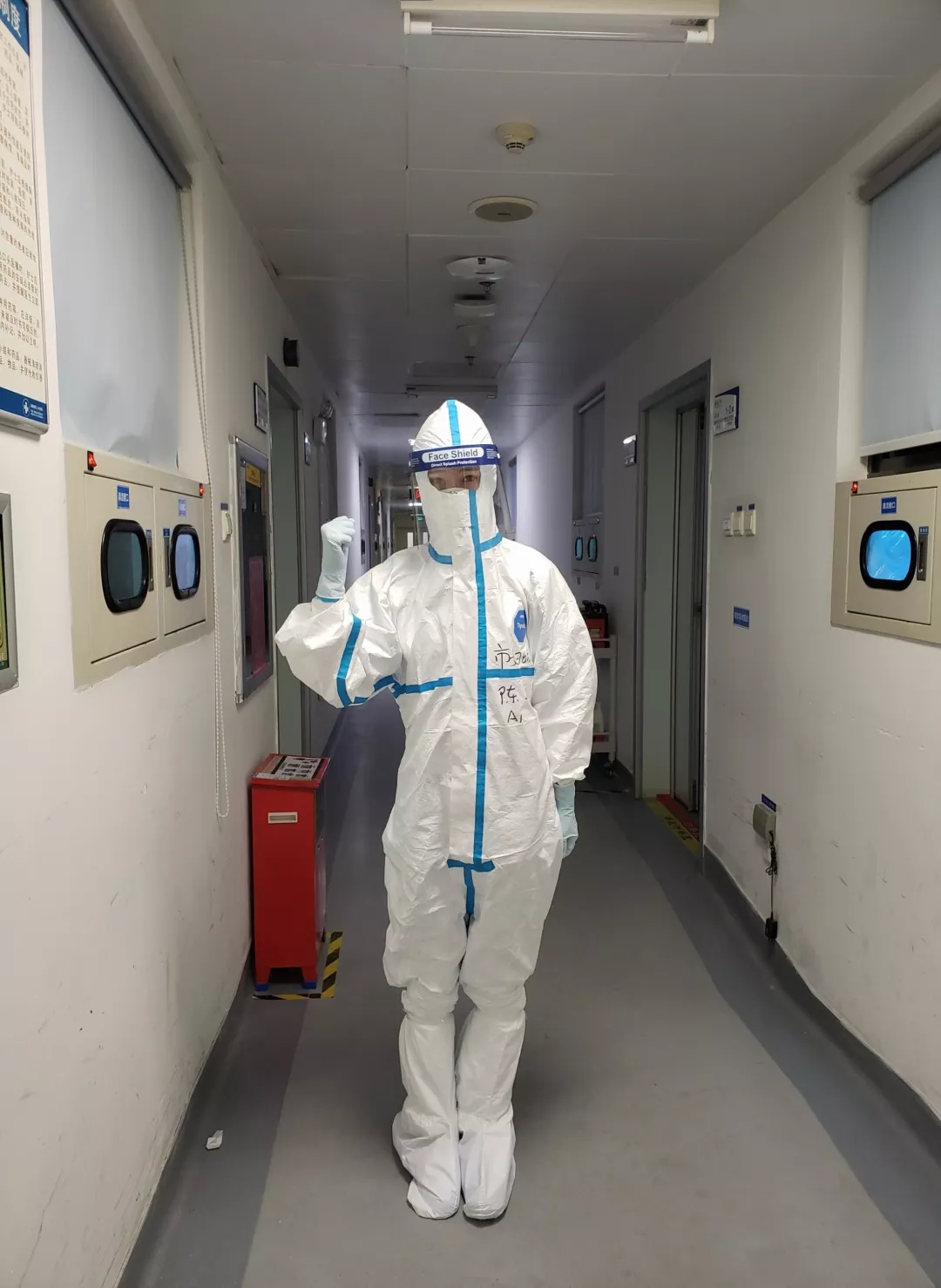 陳浠和戰(zhàn)友在市三院隔離病房為抗擊疫情加油