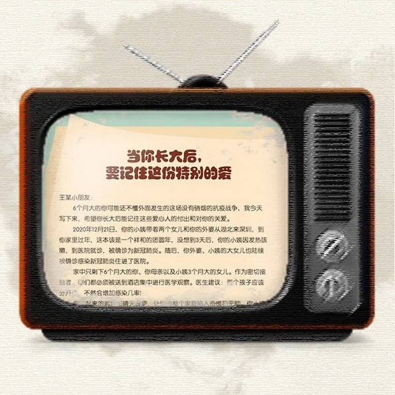 寶安區(qū)新安街道海富社區(qū)一名6個(gè)月大的孩子,因家里有人被確診為新型冠狀病毒感染的肺炎,被迫與家人分開(kāi)進(jìn)行醫(yī)學(xué)觀察。海富社區(qū)工作人員們對(duì)其悉心照顧,如今孩子已經(jīng)平安度過(guò)了14天的居家觀察期。海富社區(qū)特意為孩子留下一封情真意切的書(shū)信,希望孩子長(zhǎng)大后,能記住這段特殊時(shí)期收獲的特殊的愛(ài)。