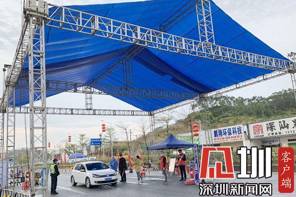 因?yàn)橛杏昱飺踔?,司機(jī)在搖下車窗配合測量體溫時(shí),沒有被雨水淋濕。深圳市公安局深汕公安分局治安大隊(duì)的民警陳志介紹說,這個(gè)藍(lán)色的雨棚是昨天晚上搭建的,施工隊(duì)伍還是臨時(shí)從深圳市內(nèi)請過來的?!坝昱镫m然搭建的很匆忙,但是很堅(jiān)固、也很實(shí)用,今天幫了我們不少忙,不然大家就要在大雨中工作了?!标愔拘χf。(見圳客戶端、深圳新聞網(wǎng)記者羅瑜 蘭俊)