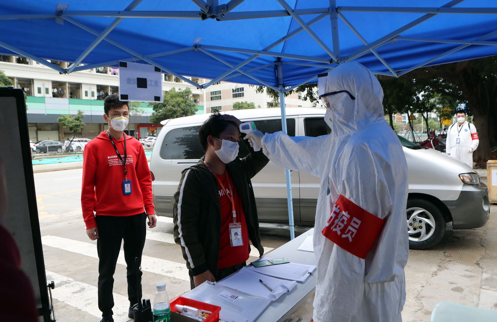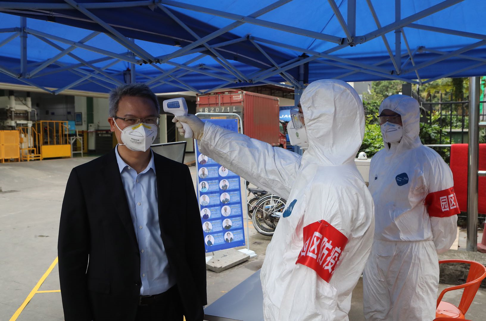 “進入園區(qū)前,所有員工必須正確佩戴一次性口罩,自覺配合進行體溫測量,不然不得進入廠區(qū)?!痹陂T口執(zhí)勤的保安說。