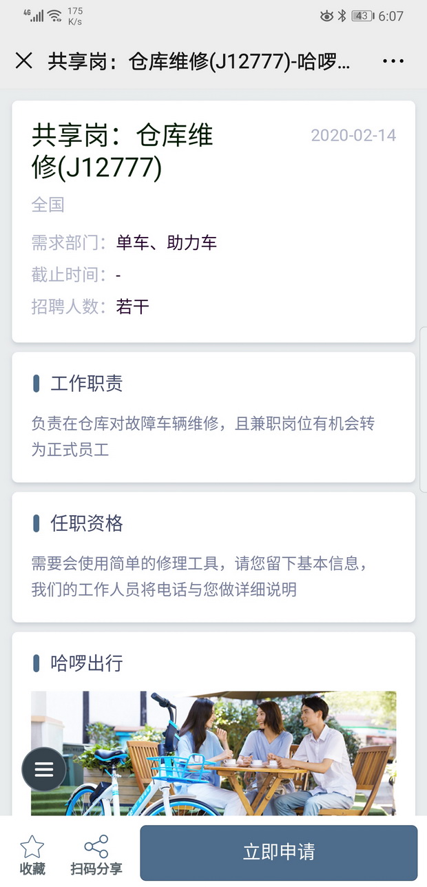 哈啰提供8000個(gè)崗位供社會(huì)報(bào)名 服務(wù)復(fù)工安全出行