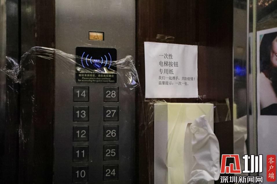 日常工作人員和旅客管理方面,酒店加強了人員排查和體溫測試,上下班員工,一旦發(fā)現(xiàn)有人有發(fā)熱、咳嗽、體溫異常等情況立即作出匯報處理,每天對在住客人上門進行兩次體溫檢測服務。酒店公共場所每兩小時進行至少一次衛(wèi)生消殺,對電梯按鈕用保鮮膜隔離,安放一次性的電梯按鈕用紙,以防交叉感染。