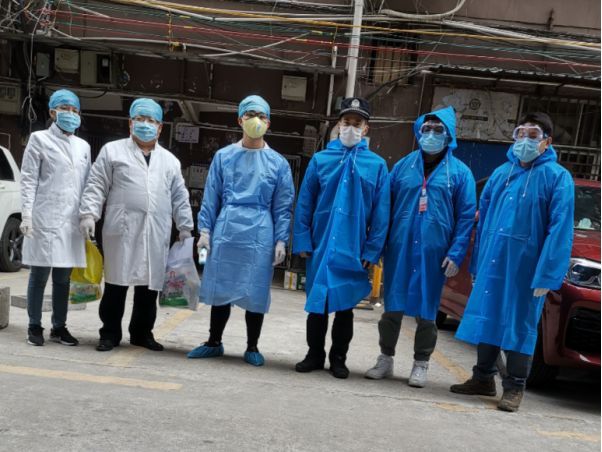 ▲李忠旺和其他抗疫人員準備入戶了解隔離人員情況。