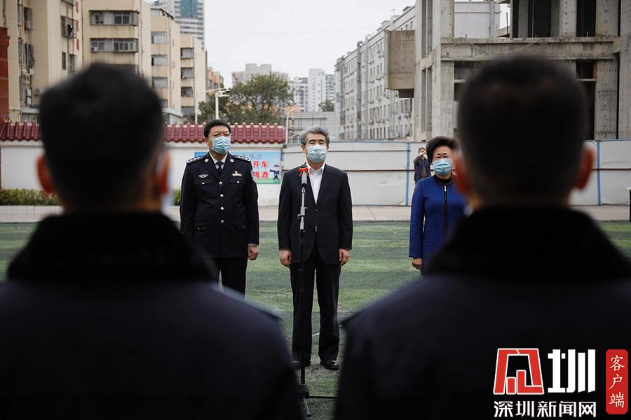 深圳市委常委、常務(wù)副市長(zhǎng)劉慶生對(duì)醫(yī)療隊(duì)員講話并祝福他們?cè)缛談P旋。
