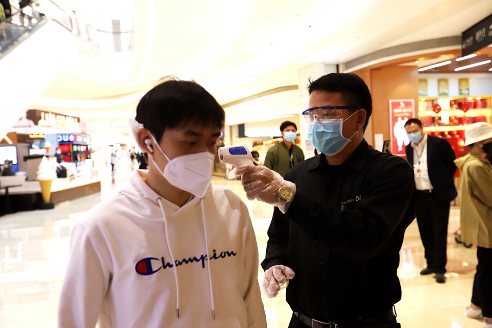 據(jù)悉,壹方城對商場進行圍閉管理,設(shè)置10個出入口,并安排專人管理,所有進入商場人員體溫測試為37.3攝氏度以下并佩戴口罩才能進入。