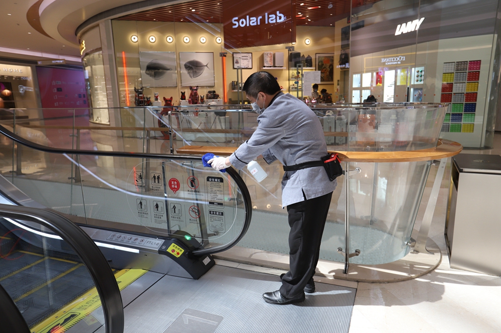 “這些可能與人產(chǎn)生近距離接觸的地方是消毒清潔的重點(diǎn)?!币挤匠俏飿I(yè)負(fù)責(zé)人表示,疫情以來,商場(chǎng)及時(shí)采購(gòu)口罩、手套、防護(hù)服、消毒水等防疫物資,并在原有基礎(chǔ)上進(jìn)一步加強(qiáng)購(gòu)物空間的清潔衛(wèi)生和消毒,尤其是扶梯、電梯、衛(wèi)生間等重點(diǎn)區(qū)位的消殺。此外,商場(chǎng)強(qiáng)化了新風(fēng)系統(tǒng)的工作,保證空氣流通,多管齊下,確保衛(wèi)生工作嚴(yán)標(biāo)準(zhǔn)、多頻次、無(wú)死角。