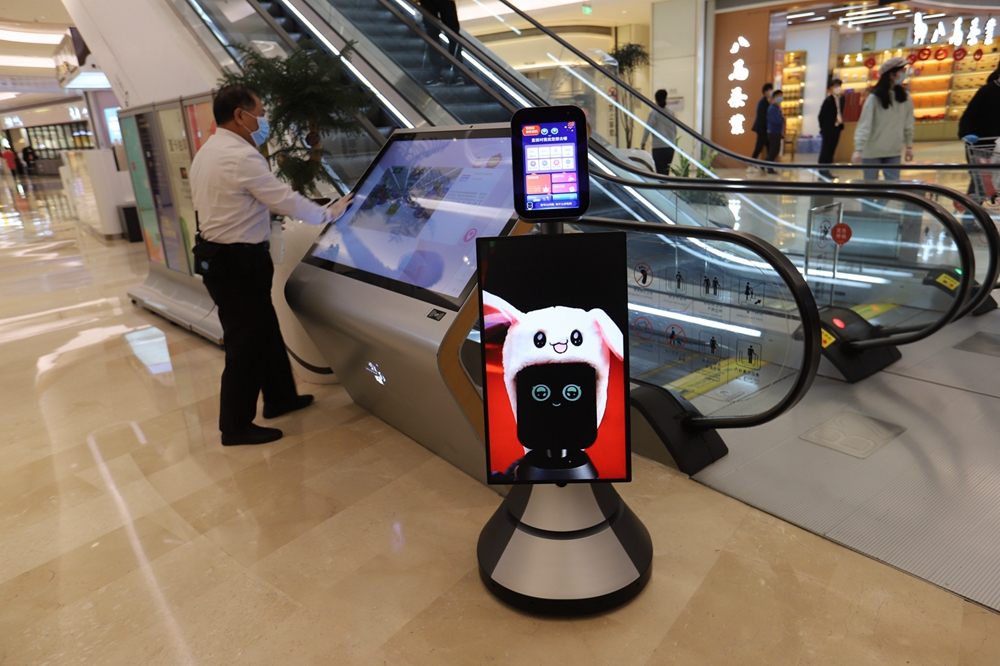 走在商場(chǎng)中,隨時(shí)可以看到保潔人員在消毒清潔。在商場(chǎng)一樓中庭導(dǎo)購(gòu)屏和導(dǎo)購(gòu)機(jī)器人處,保潔人員用消毒水反復(fù)擦拭屏幕。據(jù)悉,商場(chǎng)每小時(shí)巡回對(duì)扶梯、電梯、衛(wèi)生間、消防通道、導(dǎo)視屏、扶手欄桿、休閑椅、門把手、垃圾房、垃圾桶等地進(jìn)行消毒。