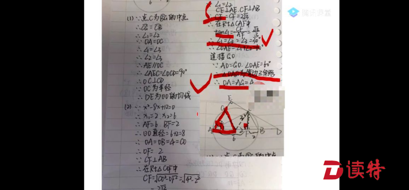 三聯(lián)永恒學校九(3)班的駱瑜濤是在微信上上課,每節(jié)課有80人左右在線?!拔覀兪莾蓚€班一起上的,有人翹課,老師也不知道,感覺同學們皮了不少,上課的效率沒有在校上課好。” 另外,他們做數(shù)學作業(yè)的軟件,經(jīng)常掉線,掉線了就要重新連接?!拔覀兓瘜W老師的電腦還容易死機,實在上不了,就把課件發(fā)給我們,然后通過微信群,把難的地方大致講一遍?!?/p>