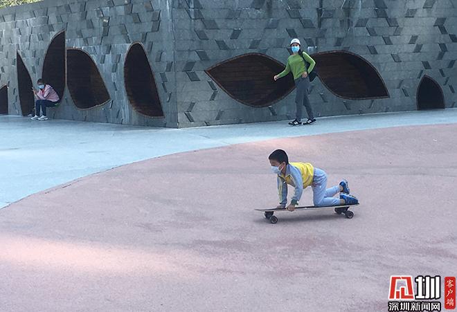 鹽田中央公園是鹽田區(qū)的地標之一,內(nèi)有滑板山丘、游樂廣場、活動草坪、主題雕塑和弧形棕櫚大道等游樂場所。在公園里,記者發(fā)現(xiàn),園內(nèi)的廣播循環(huán)播送疫情通知、防護措施等信息,呼吁游人勤洗手、戴口罩、不聚集……進入公園游玩的市民均自覺佩戴口罩,十分默契地分散開來,在空曠的地方席地而坐,并自覺保持一定的安全距離?!扒岸螘r間一直在家里宅著,連小區(qū)門都不出。今天出來透透氣,順便運動一下?!贝髦谡值膭⑾壬?,正帶著孩子在陰涼下休憩,旁邊擺放了兩輛自行車。他說,這個時候出來呼吸下新鮮空氣,活動下筋骨,十分愜意?!暗牵F(xiàn)在還沒到放松的時候,口罩肯定是要戴的,人太多、封閉的地方不建議去,還是要時刻保持警惕?!?/p>