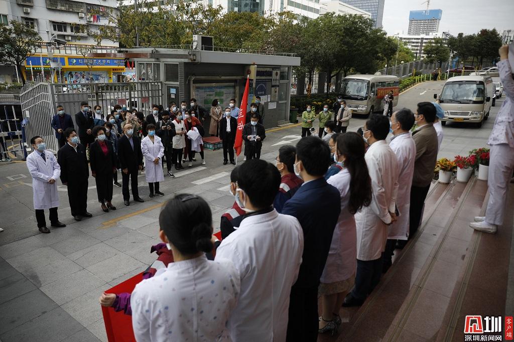 深圳市副市長吳以環(huán)以及相關(guān)領(lǐng)導(dǎo)和醫(yī)療隊合影留念。