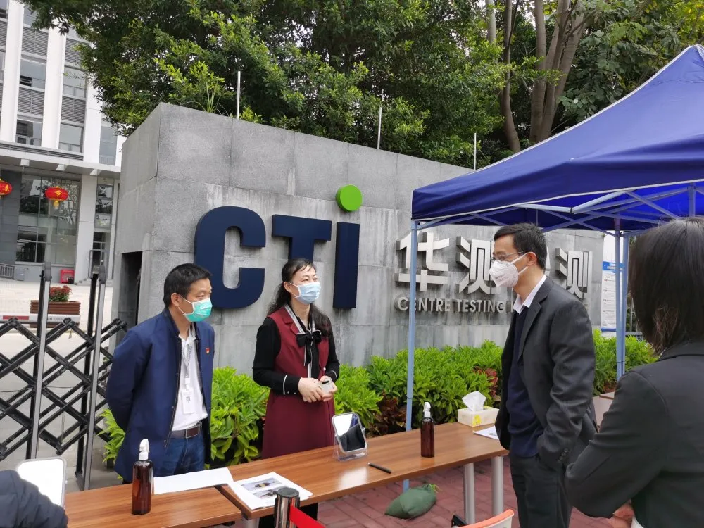 隨后,集團社康管理中心負(fù)責(zé)人和興東社康醫(yī)務(wù)人員到社區(qū)內(nèi)的重點企業(yè)——華測檢測認(rèn)證集團股份有限公司,開展復(fù)工復(fù)產(chǎn)防疫工作,指導(dǎo)管理人員學(xué)習(xí)如何正確戴口罩、洗手、測體溫,口罩回收注意事項、如何避免登記人員信息時感染等等。