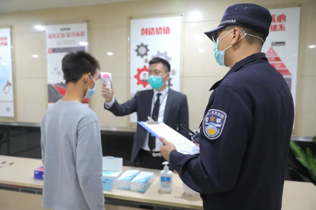 (民警對(duì)復(fù)工復(fù)產(chǎn)企業(yè)防疫檢查)