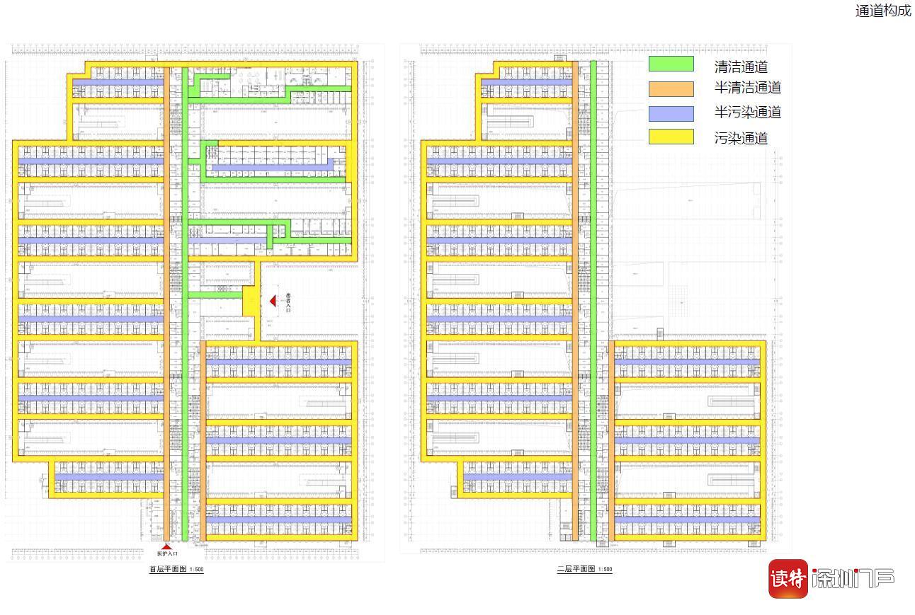 據(jù)了解,應(yīng)急醫(yī)院采用更加嚴格的“四區(qū)三通道”布局,分為清潔區(qū)、半清潔區(qū)、半污染區(qū)、污染區(qū)、清潔通道、半清潔通道、污染通道。