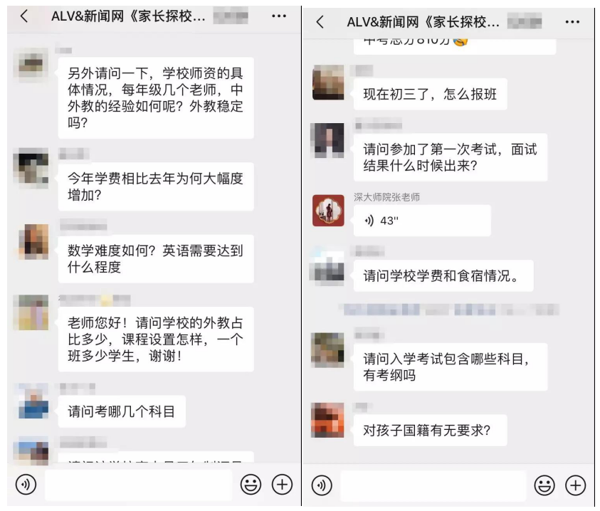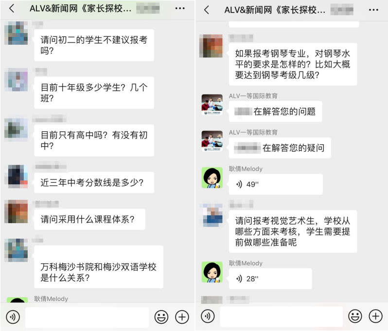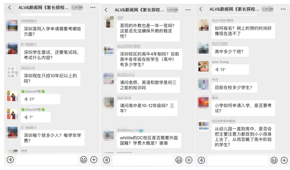 據(jù)介紹,在這三場(chǎng)探?;顒?dòng)中,招生官耐心而又細(xì)致的逐一為家長(zhǎng)答疑解惑,贏得家長(zhǎng)對(duì)本次活動(dòng)的高度認(rèn)可。以下為“家長(zhǎng)探校團(tuán)”微信群內(nèi)互動(dòng)截圖: