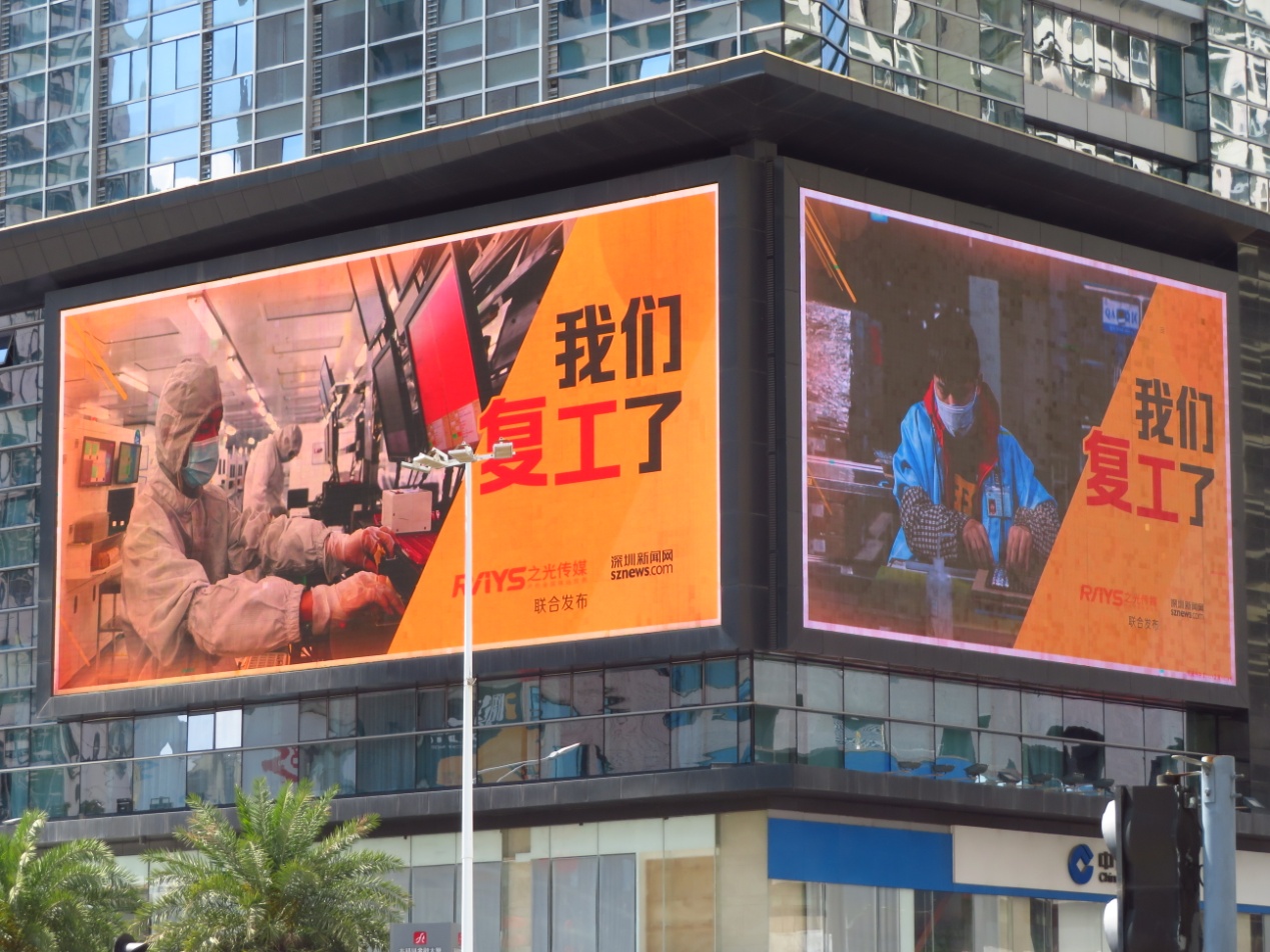 2月以來,深圳新聞網聯(lián)合之光傳媒在17塊戶外LED大屏廣告上刊登了多組不同主題的公益廣告,包括“加油中國”、“向逆行者致敬”、“瞞報就是犯罪”系列警示標語、“我們復工了”等。這些戶外大屏遍布全市各主干道和核心商圈,總面積達6000㎡,市場價值約1200萬元。