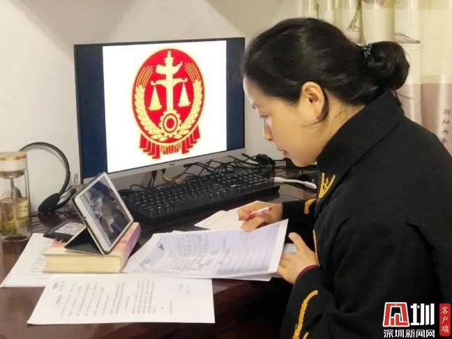 庭審當(dāng)天,審判長、人民陪審員、書記員、當(dāng)事人借助互聯(lián)網(wǎng)實(shí)現(xiàn)三線聯(lián)通,這也是深圳法院法官身在疫情嚴(yán)重地區(qū),異地遠(yuǎn)程視頻辦案的庭審。