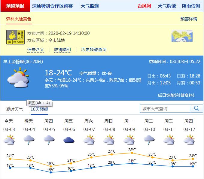 見圳客戶端·深圳新聞網(wǎng)2020年3月3日訊 據(jù)市氣象臺預(yù)測,3月3日深圳多云;氣溫17-20℃;偏東風(fēng)3級,陣風(fēng)5-6級;能見度5-15公里。早晨體感偏涼,注意添衣。