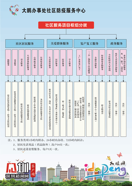 大鵬辦事處各社區(qū)黨群防疫服務中心通過建立企業(yè)和群眾需求的收集分撥機制,搭建需求后臺。在收集需求后,由訴求辦理后臺制定每日服務需求清單,明確每項任務具體負責人和完成時限,確保工作落實到位。