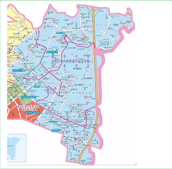 2.初中部與觀瀾第二中學(xué)(丹湖居委會(huì)、新城居委會(huì)、四和居委會(huì))及龍華區(qū)教科院附屬學(xué)校初中部共享學(xué)區(qū)范圍;丹湖居委會(huì)、新城居委會(huì)、四和居委會(huì)的適齡兒童和少年可選擇申請(qǐng)龍華區(qū)第三外國(guó)語(yǔ)學(xué)校初中部、觀瀾第二中學(xué)其中一所學(xué)校學(xué)位;福安居委會(huì)、悅興圍居委會(huì)、瓏門的適齡兒童和少年可選擇申請(qǐng)龍華區(qū)第三外國(guó)語(yǔ)學(xué)校初中部、龍華區(qū)教科院附屬學(xué)校初中部其中一所學(xué)校學(xué)位。