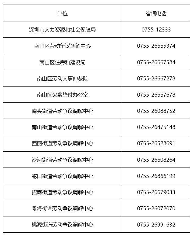 企業(yè)和職工均可致電深圳市南山區(qū)人力資源局(電話:26576148),咨詢用工過程中出現(xiàn)的問題,區(qū)人力資源局將竭誠指導(dǎo)服務(wù)。也可以按需求、分片區(qū),通過以下方式尋求幫助: