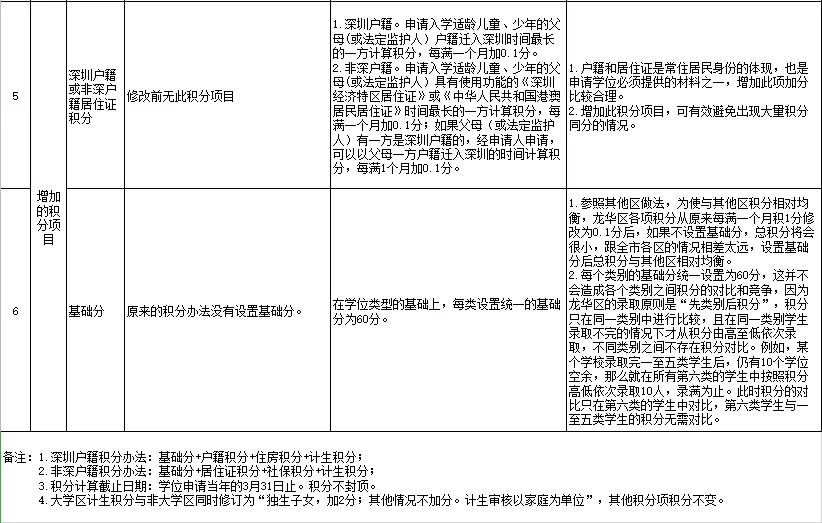 劃重點(diǎn):政策內(nèi)或全面二孩擬不再加分,獨(dú)生子女加2分;深圳戶籍自購商品房產(chǎn)擬改為以房產(chǎn)購買日期計(jì)算積分;非深戶籍?dāng)M按照養(yǎng)老保險(xiǎn)和醫(yī)療保險(xiǎn)兩種險(xiǎn)種同時(shí)繳納的時(shí)間計(jì)算積分;新增深圳戶籍或非深戶籍居住證積分;新增基礎(chǔ)分60分。