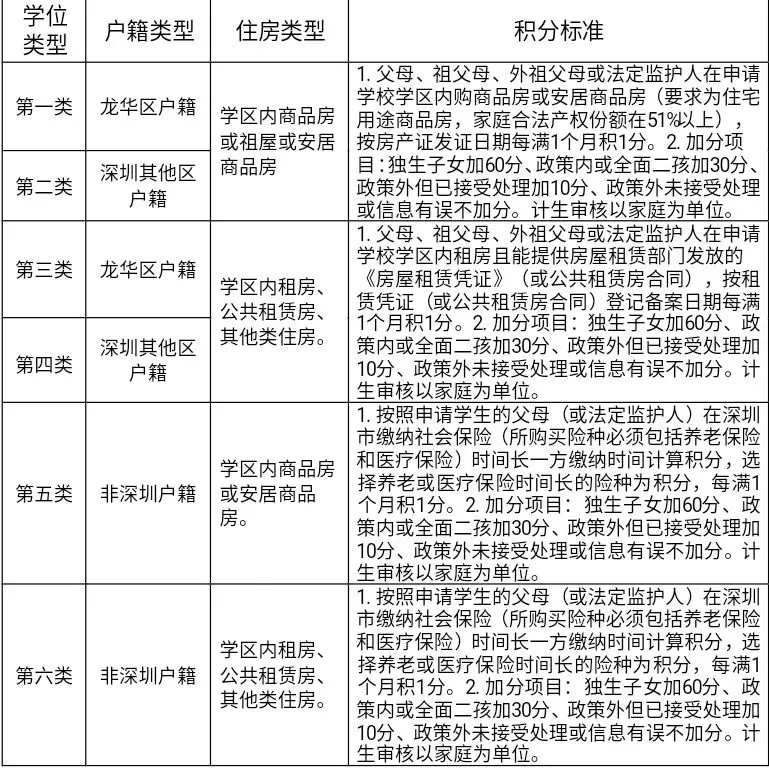 根據(jù)申請學(xué)生戶籍和住房情況,學(xué)位類型共劃分為以下6類:
