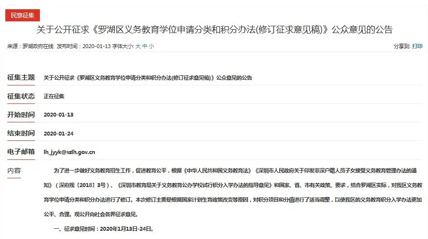 羅湖區(qū)在1月13日發(fā)布了《羅湖區(qū)義務教育學位申請分類和積分辦法(修訂征求意見稿)》向市民征求意見。