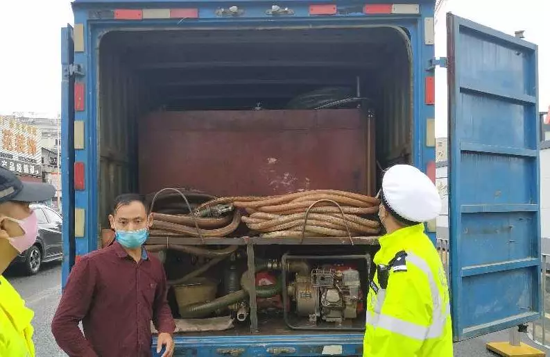 里面放著鐵質(zhì)油箱、油管,還有計(jì)量器、加油槍等物品,一個(gè)非法流動(dòng)加油車是啥樣子,這輛粵B號(hào)牌輕型廂式貨車可都有。
