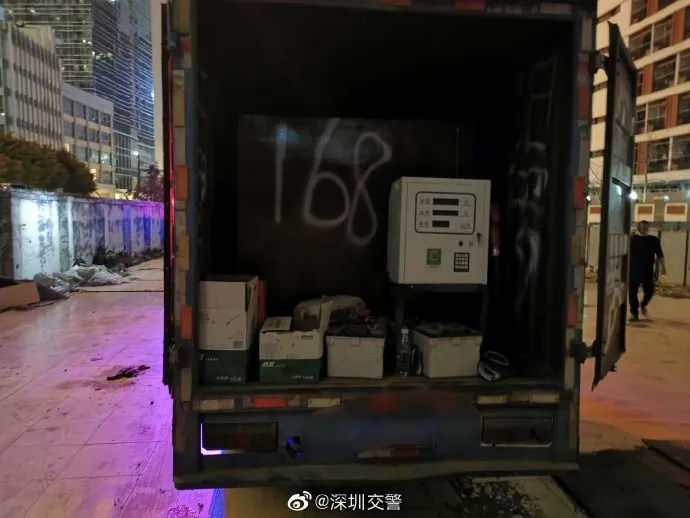 深圳交警到達(dá)現(xiàn)場時(shí),司機(jī)與相關(guān)人員都不在場,而附近居民向現(xiàn)場民警透露,這輛車的車廂內(nèi)可“大有乾坤”,出于安全考慮,交警打開該車車廂。