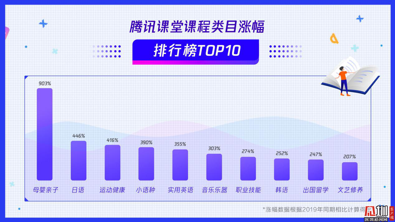 見圳客戶端·深圳新聞網(wǎng)2020年3月18日訊(見圳客戶端、深圳新聞網(wǎng)記者 劉夢婷)近日,在線職業(yè)教育平臺騰訊課堂發(fā)布數(shù)據(jù)報告:戰(zhàn)“疫”宅家期間,該平臺上課總時長提升3.5倍。同時,騰訊課堂還發(fā)布了最受歡迎課程類目(學(xué)習(xí)人數(shù))排行榜TOP10:職業(yè)技能、編程語言、建筑工程、互聯(lián)網(wǎng)產(chǎn)品、平面設(shè)計、實用英語、醫(yī)療衛(wèi)生、前端開發(fā)、設(shè)計軟件、繪畫創(chuàng)作。此外母嬰親子、日語、運動健康等課程學(xué)習(xí)人數(shù)同比漲幅均超過400%,成騰訊課堂增速最快類目,或成為未來在線職業(yè)教育新的增長點。IT互聯(lián)網(wǎng)就業(yè)類課程、工業(yè)產(chǎn)品設(shè)計類課程付費能力強,付費人數(shù)同比漲幅超過50%。