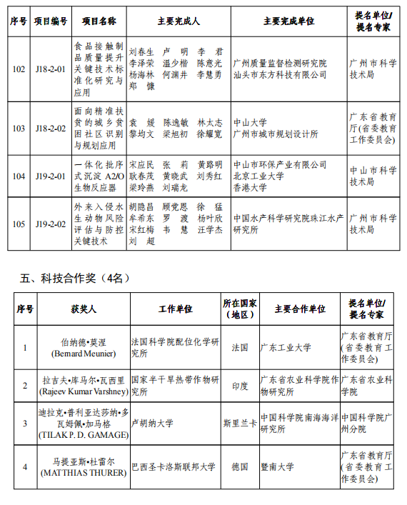 此外,授予伯納德·莫涅、拉吉夫·庫(kù)馬爾·瓦西里、迪拉克·普利亞達(dá)莎納·多瓦姆佩·加馬格、馬提亞斯·杜雷爾4名專家科技合作獎(jiǎng)。