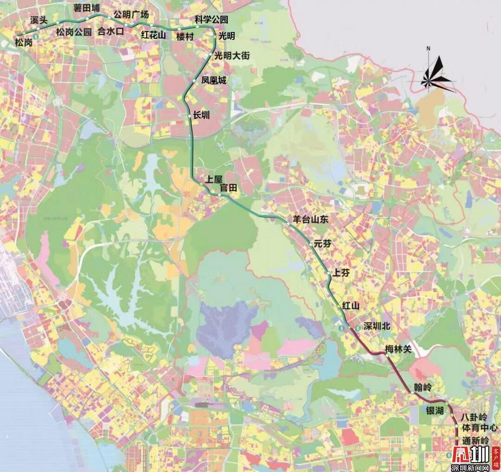 地鐵6號線線路起于松崗站,途經(jīng)寶安區(qū)、光明區(qū)、龍華區(qū)、福田區(qū)、羅湖區(qū),止于科學(xué)館站,大致呈“7形”走向,6號線一二期總長49.396公里,共設(shè)27座車站,全程用時66分鐘。線路建成后,將帶動光明區(qū)和龍華區(qū)發(fā)展、促進(jìn)城市空間結(jié)構(gòu)完善,進(jìn)一步加強(qiáng)與東莞、香港城市軌道交通之間的溝通聯(lián)系,同時有效緩解深圳北站換乘壓力,加速特區(qū)經(jīng)濟(jì)一體化進(jìn)程。