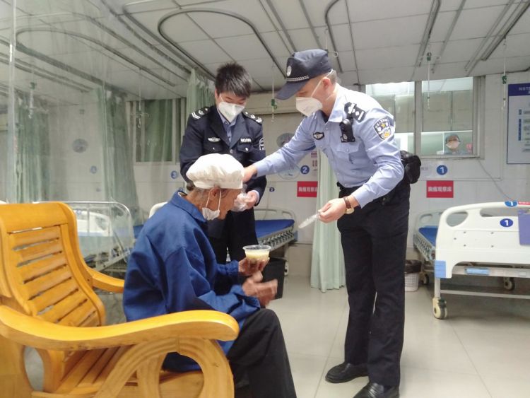 3月30日凌晨1時許,在醫(yī)務(wù)人員及民警的悉心照料下,老人漸漸蘇醒過來。石圍社區(qū)警長常軍給老人帶來了口罩和熱粥,一邊照顧老人喝粥,一邊輕聲地詢間老人的姓名、住址和親人信息等。但老人語言含糊不清、答非所問,說不清自己姓甚名誰,從哪里來、要到那里去,也無任何通訊工具。無奈,常警長只好安慰老人好好休息,并安排警力協(xié)同醫(yī)院值守警力對老人進(jìn)行輪流照看,防止其再次走失發(fā)生意外。