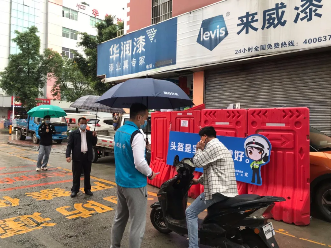 嚴(yán)查不戴頭盔違法,曝光所在社區(qū)。深圳交警聯(lián)合各轄區(qū)街道交安辦在社區(qū)內(nèi)開展頭盔佩戴抽查整治行動(dòng),提高電動(dòng)自行車駕乘人員的交通安全意識(shí)。對(duì)頭盔佩戴率較低的社區(qū),進(jìn)行通報(bào)曝光。